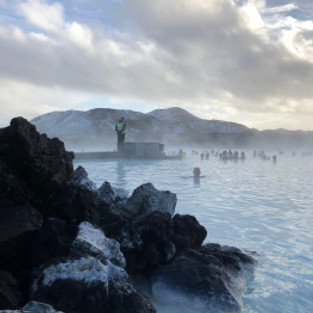 Satiated, we headed back upstairs, showered again (we follow the rules), purchased one of those waterproof cell phone cases (learn from our mistakes…paid the premium), and dove back into the water (via the indoor option!). I also bought a couple of pairs of cheap sunglasses since the occasional sunlight was reflecting off the lagoon with some intensity. For the next hour, we floated around, took some photos and enjoyed the ever-changing weather. Those sunglasses I just bought..useless…as soon as we got in the water and put them on we tempted the Norse Gods and brought about a 20 minutes snow squall…which. was. awesome.